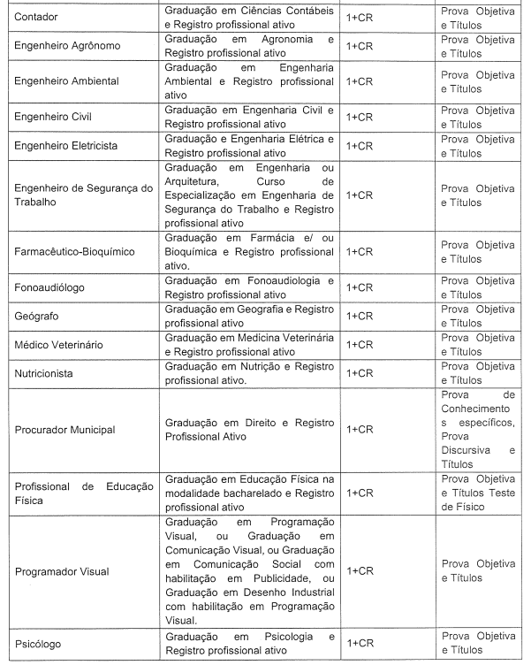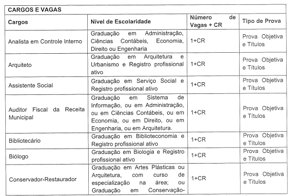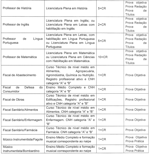 - Fiscal de Posturas: 05 vagas + CR (R$ 2.261.95);