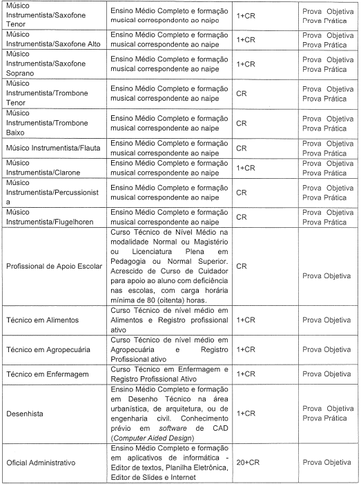- Músico Instrumentista: 09 vagas + CR (R$ 2.261.95);