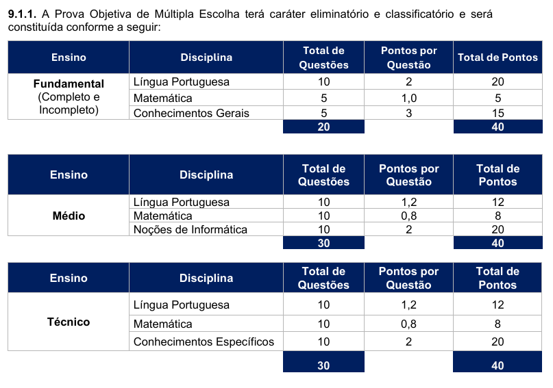 Essa prova acontecerá nas cidades indicadas no Anexo I do edital. Porém, caso o número de inscritos em alguma cidade ultrapasse a capacidade disponível para a aplicação das provas, a organização (IBFC e MGS) poderá realocar candidatos para outras cidades, sem assumir custos com transporte ou hospedagem.