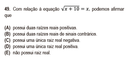 Logo, as opções (A) e (E) não possuem soluções inteiras.