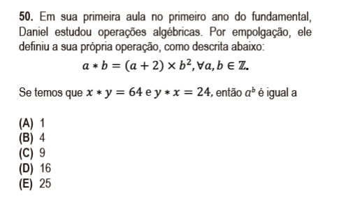 Ao resolvermos a equação dada, concluímos que x = 2 e y = 4, porém a pergunta NÃO foi feita com x e y, e sim, com a e b, sendo que os tais valores são desconhecidos já que não houve nenhuma afirmação NUMÉRICA sobre a e b anteriormente. Nitidamente, houve um erro de digitação.
