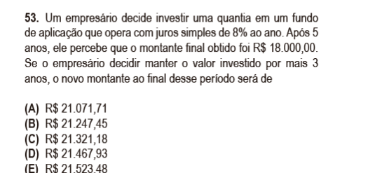 Em 5 anos, os juros percentuais são dados por 8% x 5 anos = 40%. Ao decidir deixar o valor investido por mais 3 anos, o empresário tomou a decisão de deixa-lo investido por 8 anos no total, o que gera juros percentuais de 8% x 8 anos = 64%.
