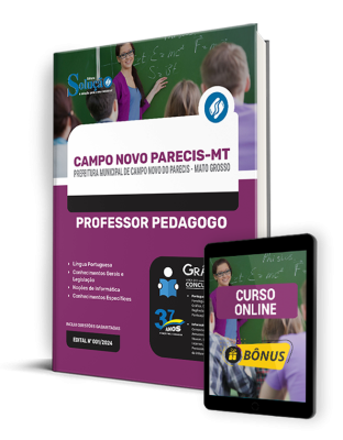 Apostila Prefeitura de Campo Novo do Parecis – MT 2024 – Professor Pedagogo foi organizada para proporcionar um melhor rendimento na sua preparação, abordando cada conteúdo de forma objetiva e direcionada. Estude para o Concurso da Prefeitura de Campo Novo do Parecis – MT 2024 com um material de acordo com o Edital oficial para o cargo de Professor Pedagogo. Características – Conteúdo de acordo com o edital oficial Nº 001/2024; – Material produzido por equipe especializada em concursos públicos; – Você receberá um bônus especial: Curso Online de disciplina básica. Matérias da Apostila: Língua Portuguesa