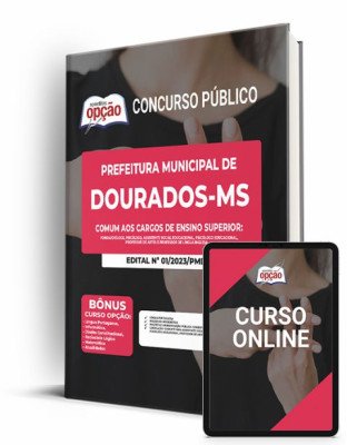 – Apostila Prefeitura de Dourados – MS 2023 – Comum aos Cargos de Ensino Superior: Fonoaudiólogo, Psicólogo, Assistente Social Educacional, Psicólogo Educacional, Professor de Artes e Professor de Língua Inglesa;
