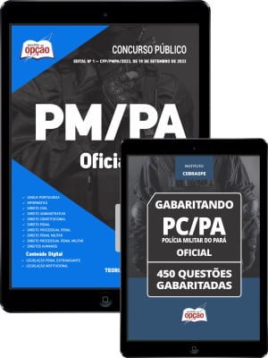 E-book PM-PA – Oficial – 450 Questões Gabaritadas em PDF: são questões cuidadosamente escolhidas pela nossa equipe editorial, com ampla experiência em concursos públicos. Conteúdo atualizado e organizado de forma a facilitar o treinamento do candidato.