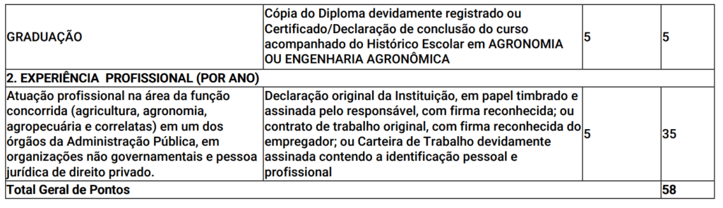Agrônomo – Conclusão do curso superior de agronomia ou engenharia agronômica.