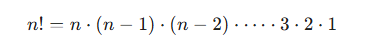 n! = n .(n-1) . (n-2) . (n-3)