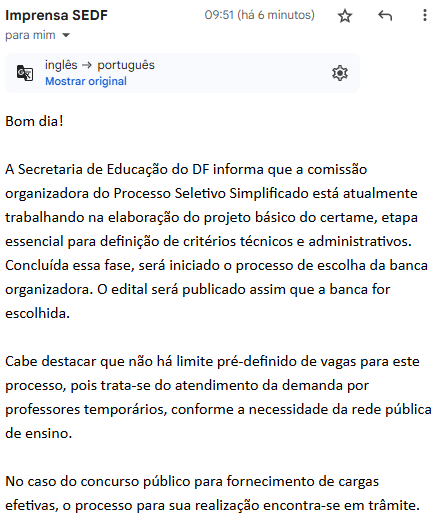 Saiba mais: concurso SEDF