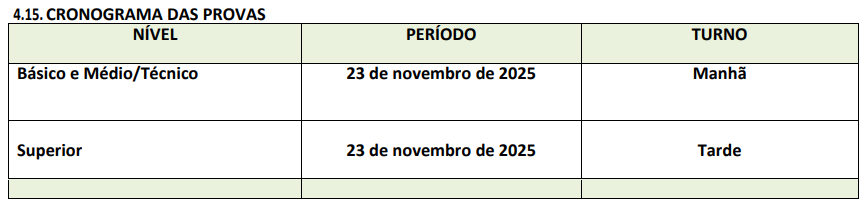 - Prova objetiva para todos os cargos (eliminatório e classificatório);