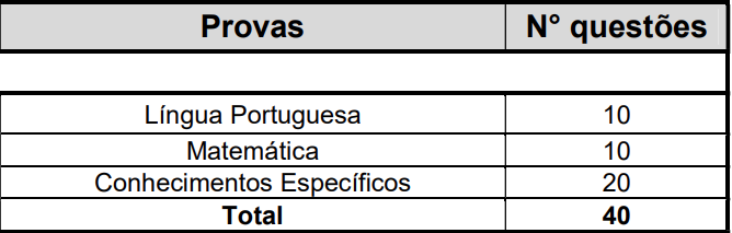A etapa, de caráter eliminatório e classificatório, terá 2 horas de duração e será composta por 40 questões do tipo múltipla escolha (4 alternativas).