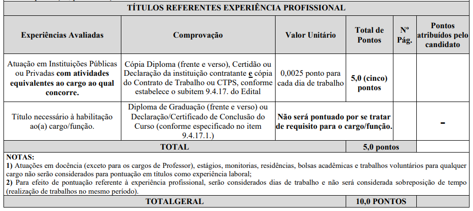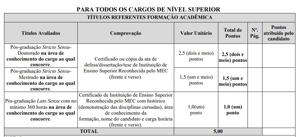 Os candidatos serão avaliados por meio de 40 questões de múltima escolha valendo 100 pontos no total.