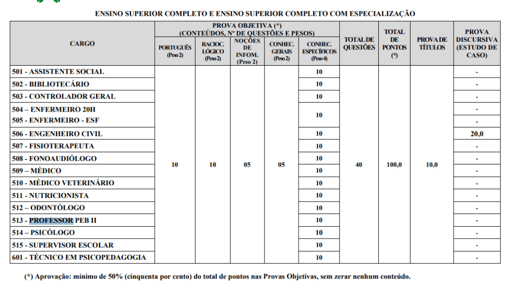 | 513 – Professor PEB II | Licenciatura Plena com formação em Magistério, Normal Superior ou Pedagogia | 25h semanais | 71 | 5 | 14 | 90 | R$ 3.310,70 |
