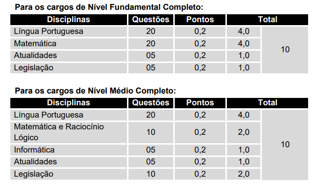 - Prova objetiva para todos os cargos (eliminatório e classificatório);