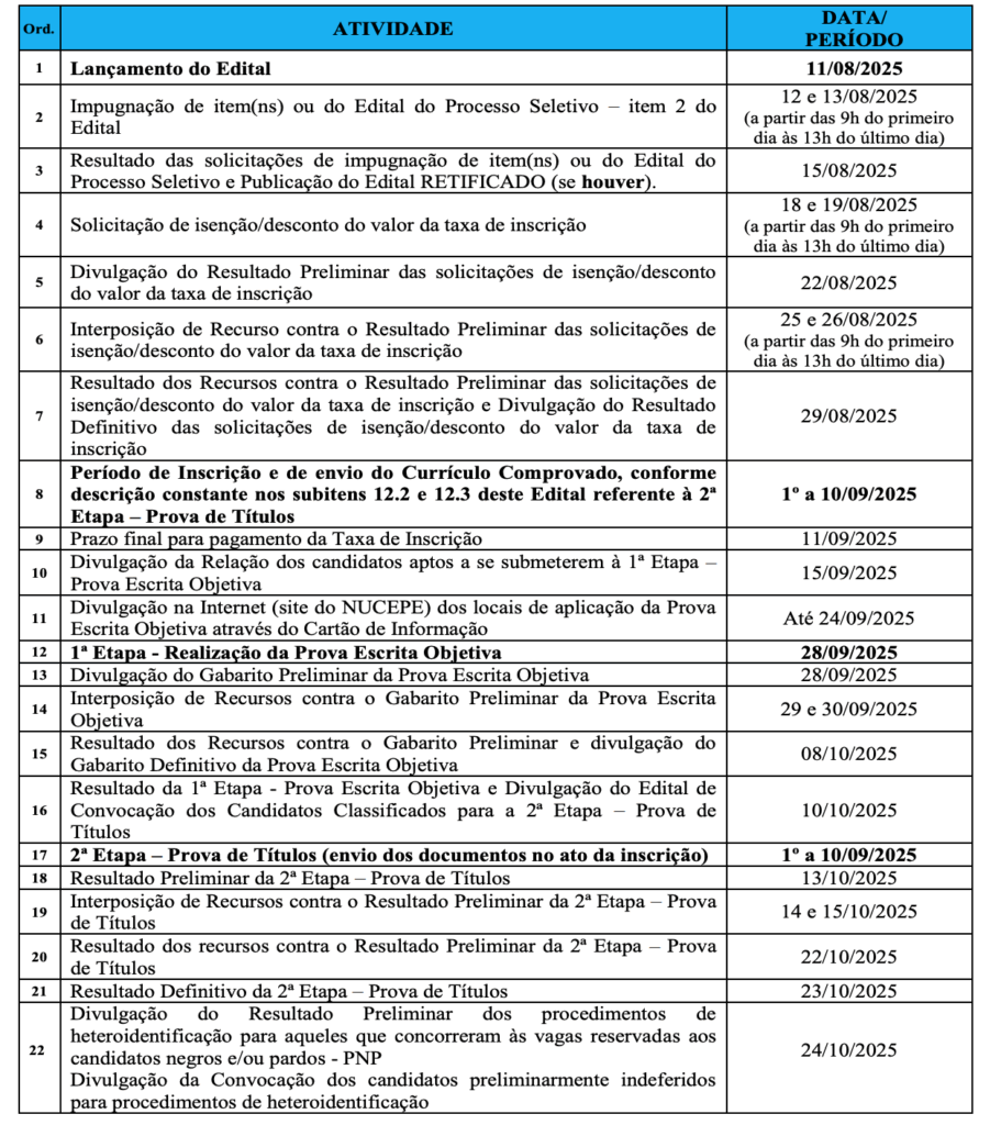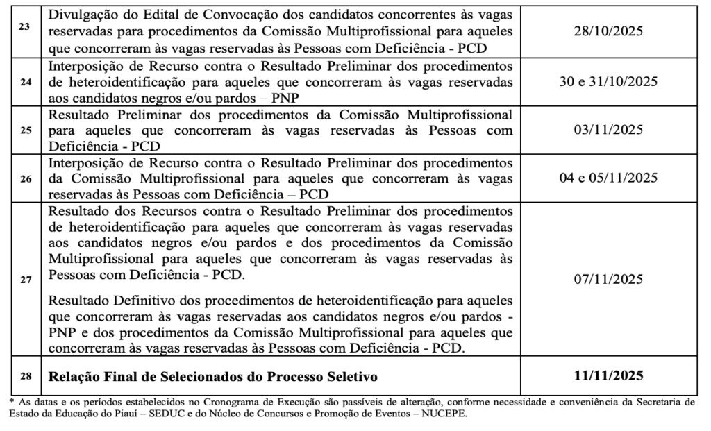 Concurso Seduc PI Temporários: Principais datas