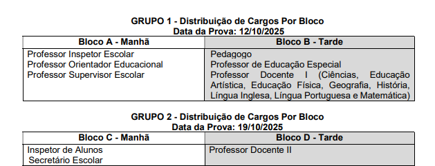 - Professor Docente I (Ciências, Educação Artística, Educação Física, Geografia, História, Língua Inglesa, Língua Portuguesa e Matemática);