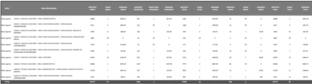 | Cargo 4: Analista Judiciário – Área: Apoio Especializado – Especialidade: Comunicação Social | CR | CR | CR | CR | CR |