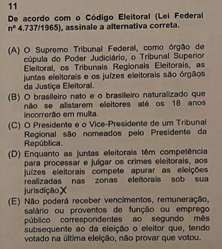 DISCIPLINA – Direito Eleitoral – Questão 11