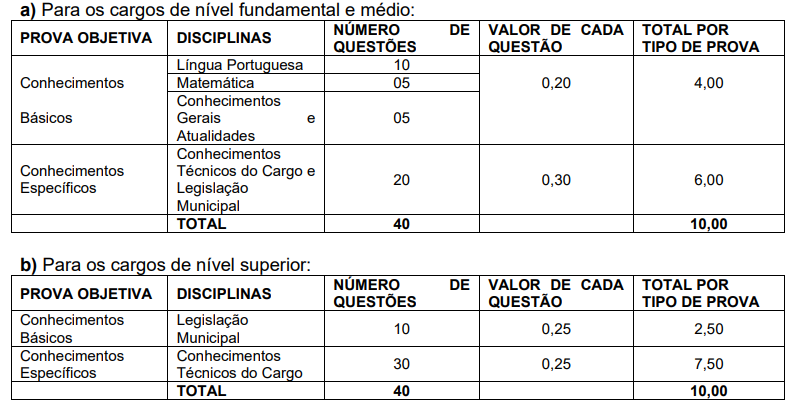 - Prova objetiva, para todos os cargos;