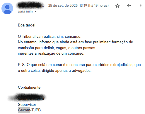 Isso reforça ao que havia sido repassado ao time de jornalismo do Estratégia Concursos, no último mês – setembro – de que o “Tribunal vai realizar, sim. concurso”.