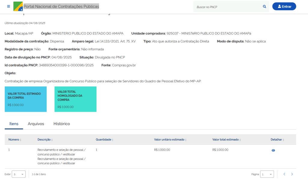 A novidade foi disponibilizada nesta segunda-feira, 04 de agosto, no Portal Nacional de Contratações Públicas, veja: