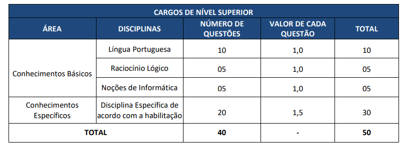 - Prova objetiva para todos os cargos (eliminatório e classificatório);