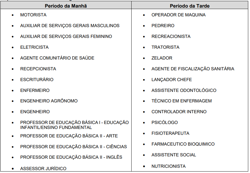 • Prova objetiva, todos os cargos;
