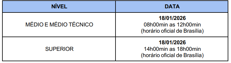 até 4 de novembro - Prova: 18 de janeiro de 2026
