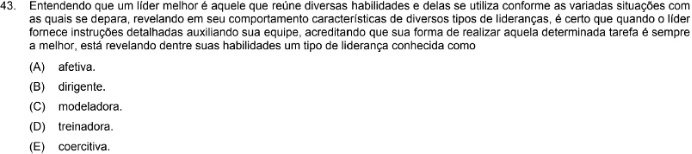 apresenta dubiedade de entendimento ao candidato, pois o líder que fornece instruções detalhadas ocorre no estilocoercitivo, conforme descrito nos textos abaixo.