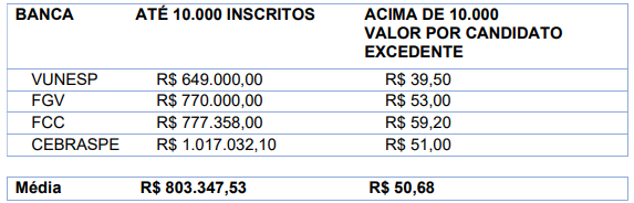 Além da Fundação Vunesp, outras empresas também foram consultadas, como a FGV, FCC e Cebraspe, entretanto, a primeira propôs o melhor preço.