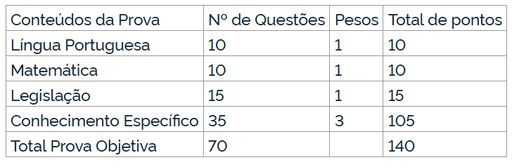 O concurso consistirá de uma prova objetiva de múltipla escolha, para todos os cargos, de caráter eliminatório e classificatório, com duração de 4 (quatro) horas. Os programas dos conteúdos da prova objetiva estarão disponíveis a partir do dia 19 de janeiro.