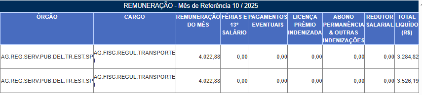 Assim, trouxemos abaixo alguns exemplos retirados do Portal da Transparência de São Paulo, exemplificando os valores reais recebidos por servidores ativos na Artesp: