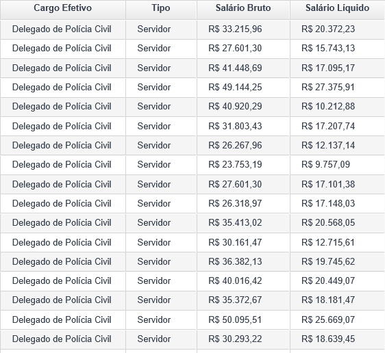 As oportunidades contemplarão os cargos de Oficial Investigador de Polícia (que unifica as funções de Agente e Escrivão), Delegado de Polícia, Agente de Necrotomia, Papiloscopista e Peritos. As remunerações variam de R$ 9.274,48 a R$ 25.259,62.