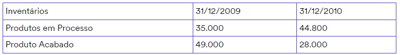A Companhia Industrial Progresso, no exercício de 2010, contabilizou os seguintes gastos referentes ao seu processo de produção: