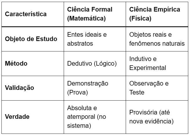 Por fim, abaixo, apresentamos um quadro comparativo para fixar a diferença entre ciências formais e empíricas: