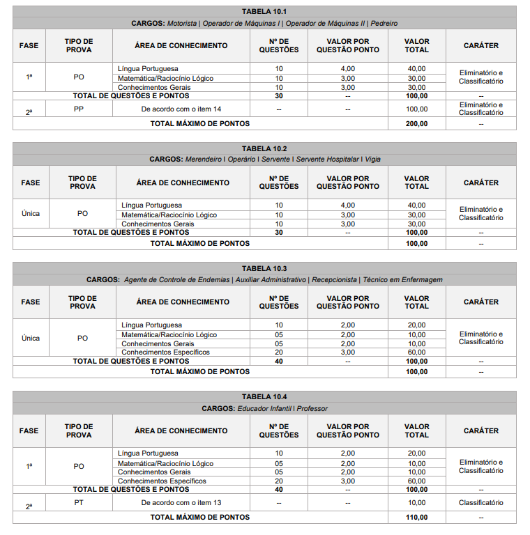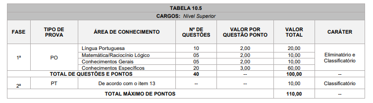 Logo abaixo você confere os detalhes da prova objetivas, incluindo o número de questões, disciplinas e valor por questão: