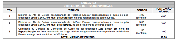 A prova de títulos, de caráter classificatório, será aplicada aos cargos de Educador Infantil, Professor e os demais de nível superior.