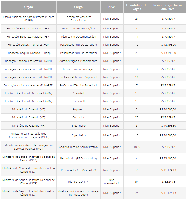 Importante ressaltar que estes valores são referentes aos salários dos cargos do CNU 2025 a partir de abril de 2026.
