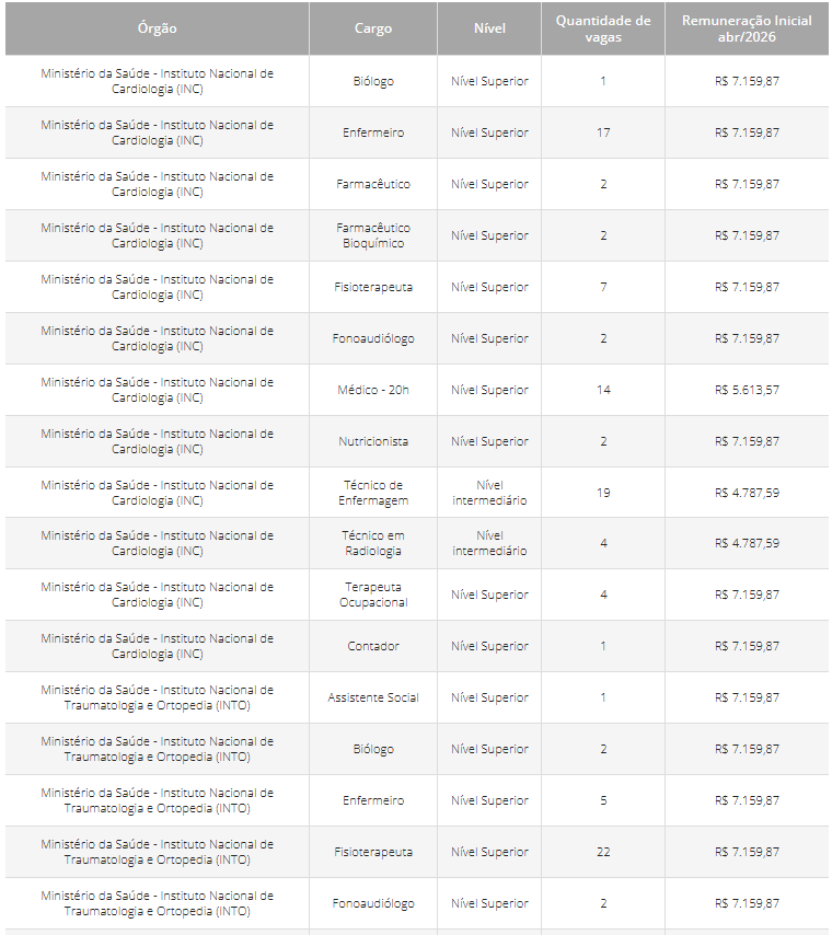 - MGI – Médico: 80 vagas;