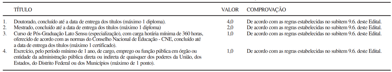 - Avaliação de Títulos (classificatório).